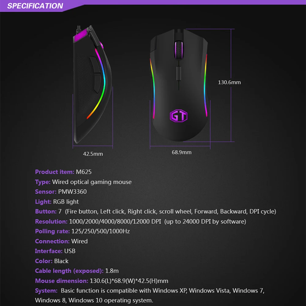 Mouse Color: Black with RGB Backlit Light